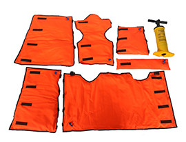 頸部夾板、小臂夾板、彎曲夾板、長(zhǎng)臂/小腿夾板、大腿夾板、軀體夾板、專用氣泵、便攜包組成。
