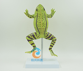 此款放大的青蛙解剖模型,各個(gè)部位及器官均標(biāo)有數(shù)字,并配有相應(yīng)文字說明。