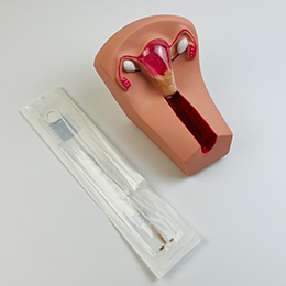 ■ 造型逼真的模型可模擬訓練和演示宮內避孕器的置入和取出。半透明的子宮可以清楚觀察宮內避孕器的安放過程。