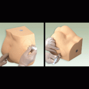 該模型設(shè)計(jì)簡(jiǎn)單明了,半邊臀部區(qū)域內(nèi)有注射部位分虛線標(biāo)志、注射模塊組成。注射模塊可以注射液體、方便取出、捏干液體,是學(xué)員實(shí)習(xí)的理想產(chǎn)品。