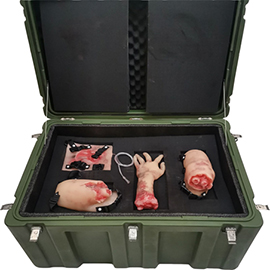 ■ 用于模擬各種火器傷、燒傷、割傷,模仿傷口割裂、斷骨、發(fā)紺、水泡,可逼真模擬出汗、血液、膿液、粘液等。