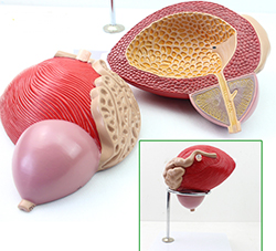 該模型采用高倍放大(放大3倍)模型,中間縱切打開,詳細(xì)的展示了膀胱的各個解剖結(jié)構(gòu),及周圍組織,清晰的展現(xiàn)了,膀胱壁 漿膜層以及肌肉層和粘膜層的解剖結(jié)構(gòu)及生理特征,并且也展示了尿道內(nèi)口,前列腺,以及部分輸精管結(jié)構(gòu),是泌尿生殖教學(xué),學(xué)習(xí),醫(yī)患溝通不可多得的一款精品模型。