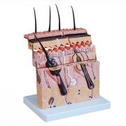 皮膚切面模型顯示了皮膚的不同層次,用于學(xué)習(xí)頭發(fā)、汗腺、皮膚感覺器官等基礎(chǔ)知識(shí)。側(cè)鉸鏈連接,放于底座上。