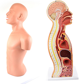 這款教學(xué)模型展示了通過(guò)鼻、口、咽、氣管、食管和胃的縱切面。塑料食管和其他插管可通過(guò)鼻或口插入食管或胃。另加的氣管造口以演示導(dǎo)管呼吸。