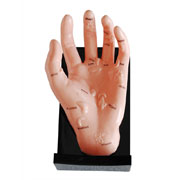 這款按摩手模型,用PVC制成,顯示相對應(yīng)的人體內(nèi)臟器官在手上的針灸位置。安放于木底座上。尺寸: 20x12CM。