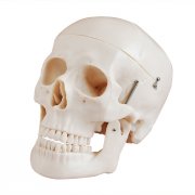 這款新開(kāi)發(fā)的自然大成人頭骨模型顯示:活動(dòng)下巴、切開(kāi)的頭蓋骨和骨縫線,頭骨的表現(xiàn)極其逼真。分成三部分。