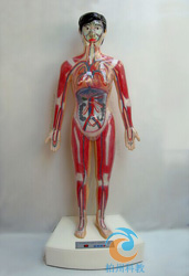 ■ 產(chǎn)品為成人女性,,質(zhì)材后部采用增強(qiáng)塑料,前部為PVC塑料。動靜脈采用紅、藍(lán)發(fā)光二極管。底座后方有220V電源插座,前上方有全身血液循環(huán)、體循環(huán)、肺循環(huán)、復(fù)位四個(gè)演示按鈕。