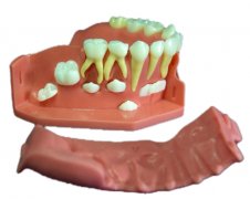 牙列發(fā)育模型展示兒童5-9歲段的牙列發(fā)育情況,可移去硅橡膠牙齦暴露正常牙齒發(fā)育的情況.