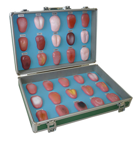 舌苔模型分為30種舌苔,分別為:正常舌苔、淡白舌、淡白胖嫩舌、紅舌、舌紅少津、舌尖紅起刺、絳舌、紫斑舌、紫暗胖舌、淡紫青滑舌、絳紫干焦舌、歪舌、鏡面舌、紅絳裂紋舌、淡胖裂紋舌、薄白苔(舌質(zhì)正常)、薄白苔(舌質(zhì)紅)、薄白微黃苔、白水滑苔、白膩苔、白厚而干苔、薄黃苔、黃膩苔、黃粘膩苔、黃燥苔、焦黃苔、黑而干燥苔、黑而潤滑苔凝聚、雞心苔、花剝苔。
